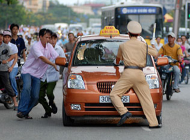 Taxi chèn qua người trung úy công an